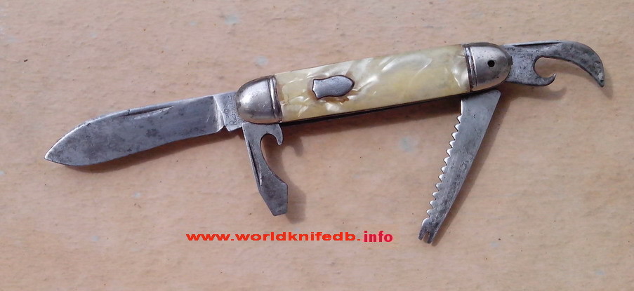 Poignée: 2 coques de tôles avec revètement synthétique imitation nacre.